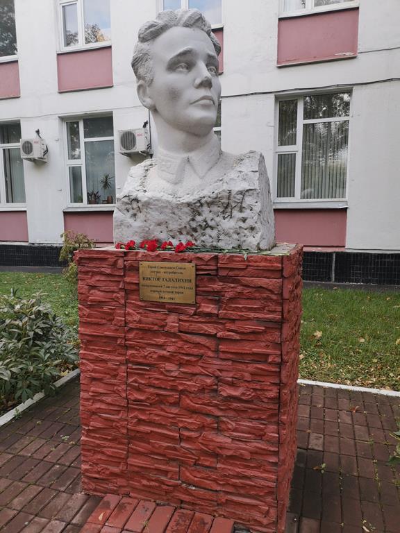 Талалихин Виктор Васильевич родился 18 сентября 1918 года в селе Тепловка Саратовской области в семье крестьянина. Семья переехала в Москву. Витя окончил 7 классов, Школу фабрично-заводского ученичества при Московском мясокомбинате и стал рабочим колбасного цеха. В 1935 году учился в аэроклубе, по окончании которого был направлен по путёвке комсомола в Борисоглебскую военную авиашколу имени Чкалова и с успехом её закончил. С 1937 года Виктор Васильевич на военной службе. В 1939-1940 он участвовал в Советско-финской войне и проявил себя отважным лётчиком. Совершил 47 боевых вылетов, прославил себя подвигом. В.В. Талалихин в воздушном бою спас жизнь своему командиру. За этот подвиг он был награждён орденом Красной Звезды. Весной 1941 года Виктор окончил курсы авиазвеньев, получил назначение в 177-й истребительный авиаполк в Московском военном округе. С первых дней Великой Отечественной войны он защищал Москву. В ночь на 7 августа 1941г. поступило сообщение о приближении к столице самолётов противника. Командир поднял в воздух 1-ю эскадрилью. Главная задача – не пропустить летящие к Москве бомбардировщики, каждый из которых нёс 1300 кг бомб. Истребитель И-16 Талалихина взмыл в ночное небо. Лётчик заметил немецкий самолёт «Хенкель-111». Виктор быстро настиг вражеский бомбардировщик. После шестой атаки у Виктора кончились патроны и заканчивалось горючее. Советский лётчик решил подойти вплотную и ударом своего винта отрубить противнику хвост. Однако враг отстреливался. Талалихин был ранен в руку. И тогда он пошёл на таран. О подвиге Виктора Васильевича узнала вся страна. Указом Президиума Верховного Совета СССР 8 августа 1941 года младшему лейтенанту В.В. Талалихину было присвоено звание Героя Советского Союза. Молодой лётчик не дожил до Победы. Он героически погиб в воздушном бою 27 октября 1941года в районе г. Подольска Московской области. Похоронен на Новодевичьем кладбище в Москве. Память о герое сохраняется народом. В его честь названа улица в Москве, его имя носят учебные заведения.